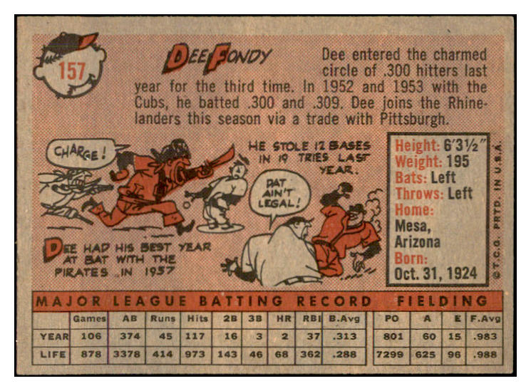 1958 Topps Baseball #157 Dee Fondy Reds EX-MT 535709