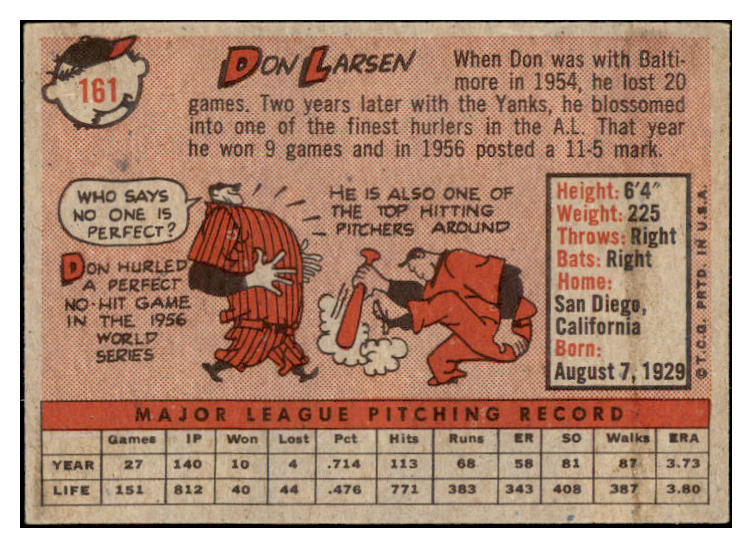 1958 Topps Baseball #161 Don Larsen Yankees EX+/EX-MT 530551