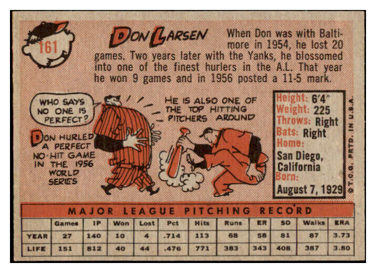 1958 Topps Baseball #161 Don Larsen Yankees NR-MT 530278