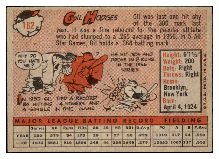 1958 Topps Baseball #162 Gil Hodges Dodgers EX+/EX-MT 528974