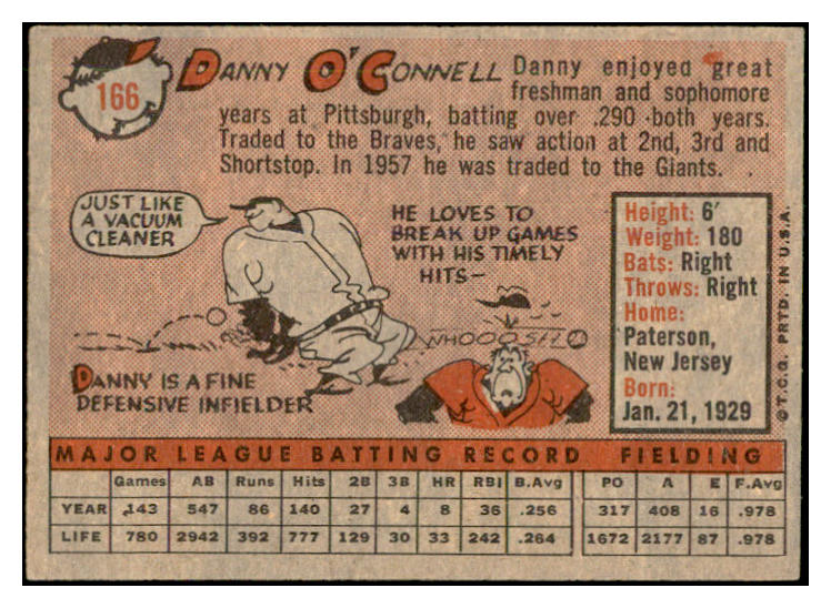 1958 Topps Baseball #166 Danny O'Connell Giants EX-MT 535719