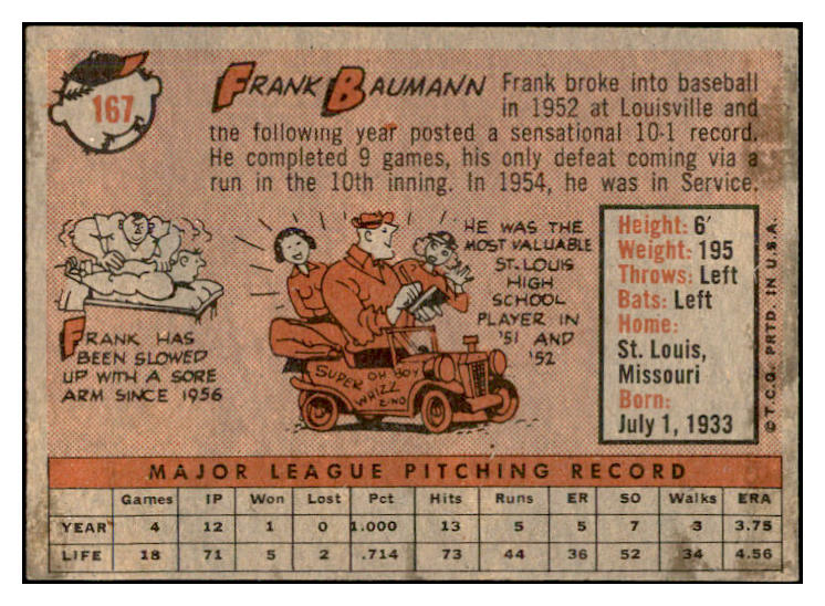 1958 Topps Baseball #167 Frank Baumann Red Sox EX-MT 535721