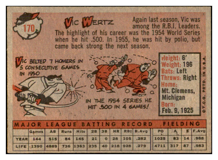 1958 Topps Baseball #170 Vic Wertz Indians EX-MT 535726