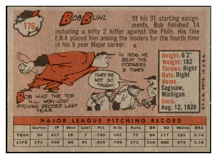1958 Topps Baseball #176 Bob Buhl Braves EX-MT 535733