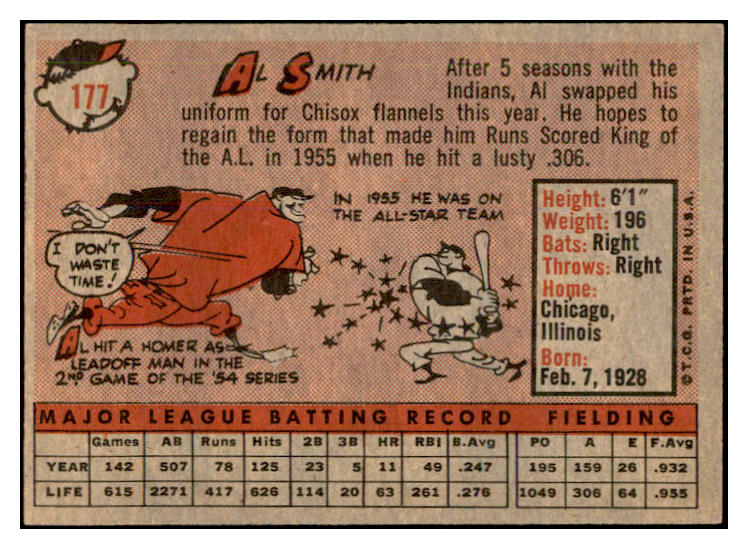1958 Topps Baseball #177 Al Smith White Sox EX-MT 535734