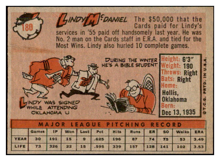 1958 Topps Baseball #180 Lindy McDaniel Cardinals EX-MT 535736