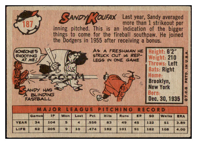 1958 Topps Baseball #187 Sandy Koufax Dodgers VG-EX 529018