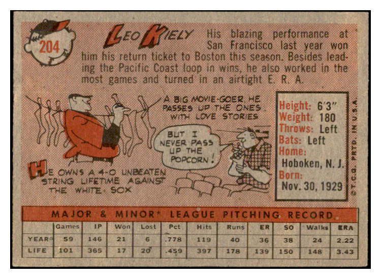 1958 Topps Baseball #204 Leo Kiely Red Sox EX-MT 535770