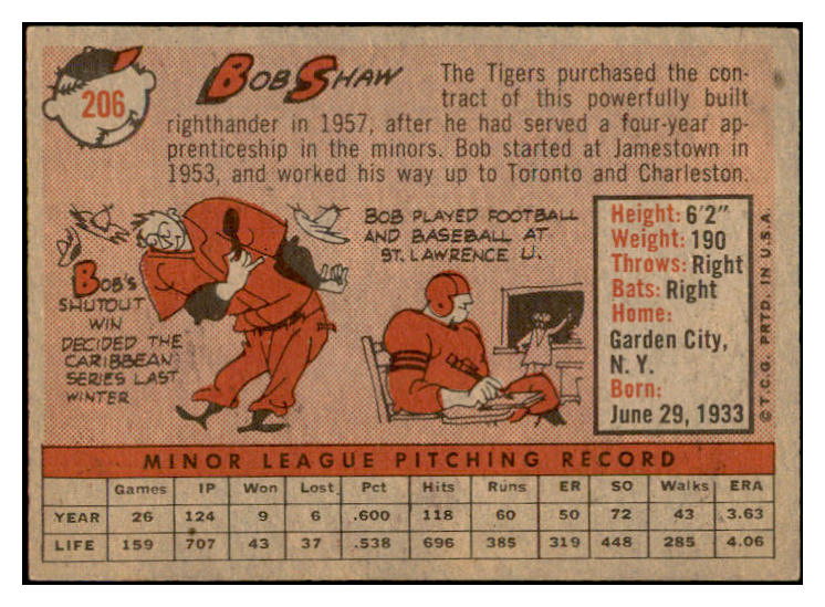 1958 Topps Baseball #206 Bob Shaw Tigers EX-MT 535772