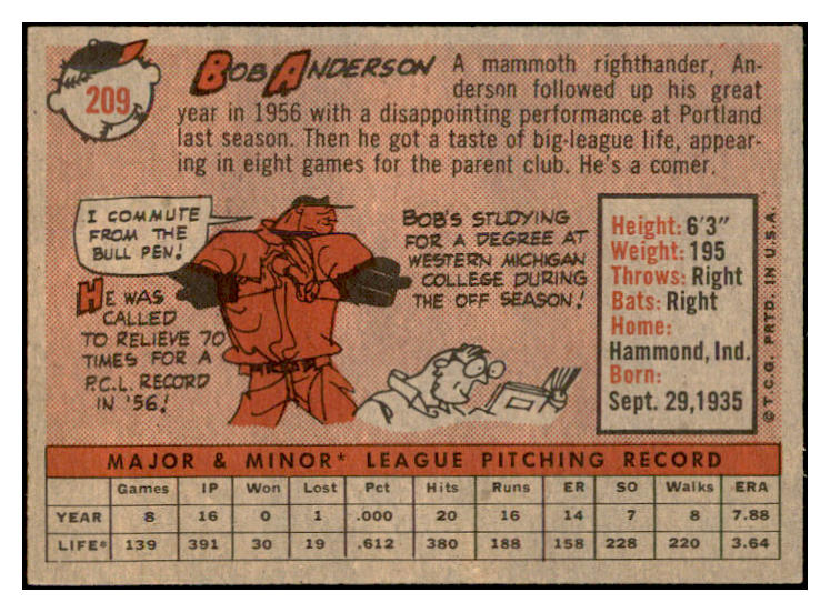 1958 Topps Baseball #209 Bob Anderson Cubs EX-MT 535779