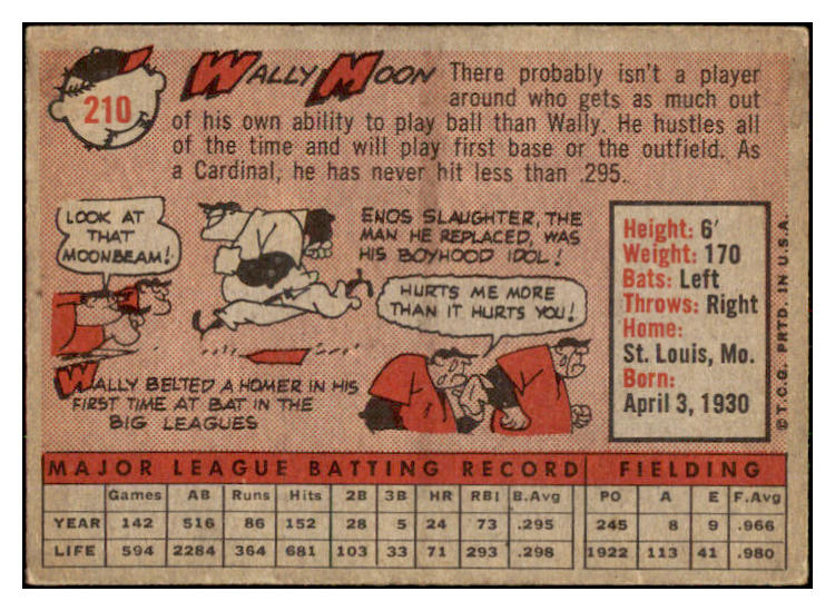 1958 Topps Baseball #210 Wally Moon Cardinals EX 530548