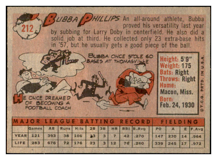 1958 Topps Baseball #212 Bubba Phillips White Sox EX-MT 535783