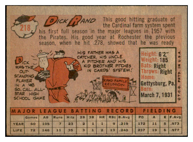 1958 Topps Baseball #218 Dick Rand Pirates EX-MT 535788