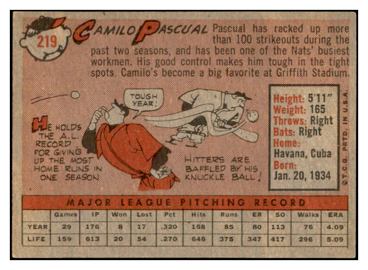 1958 Topps Baseball #219 Camilo Pascual Senators EX-MT 535790