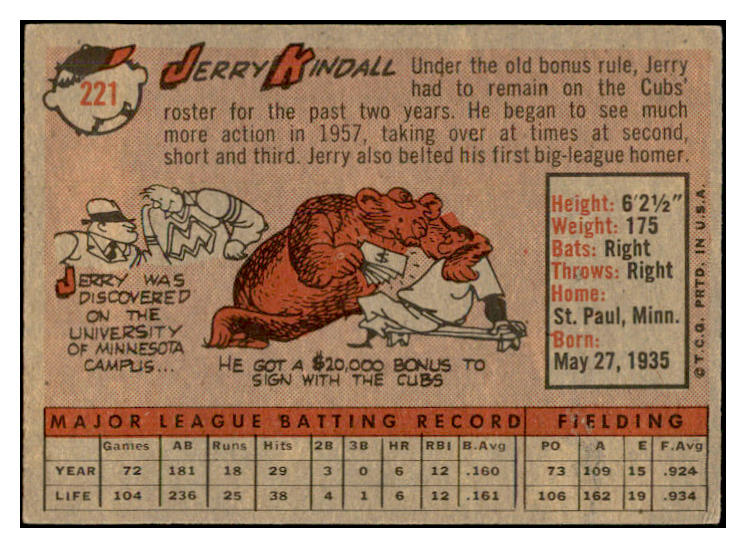 1958 Topps Baseball #221 Jerry Kindall Cubs EX-MT 535793