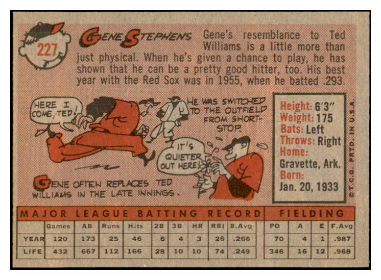 1958 Topps Baseball #227 Gene Stephens Red Sox EX-MT 535803