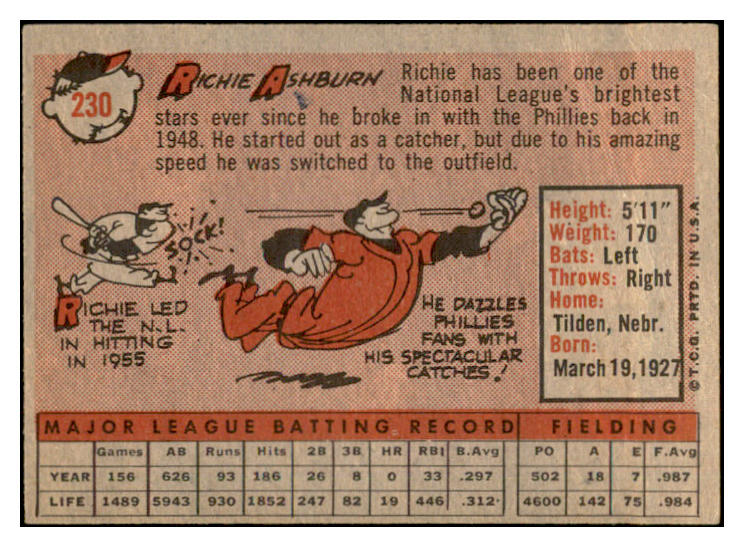 1958 Topps Baseball #230 Richie Ashburn Phillies EX 532533