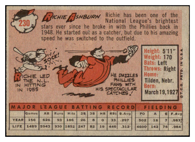 1958 Topps Baseball #230 Richie Ashburn Phillies EX-MT 523818