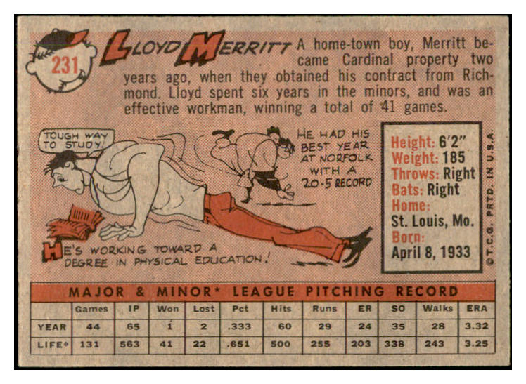1958 Topps Baseball #231 Lloyd Merritt Cardinals EX-MT 535809