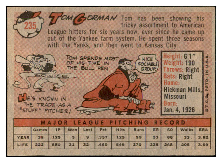 1958 Topps Baseball #235 Tom Gorman A's EX-MT 535817