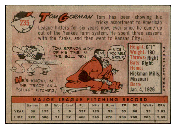 1958 Topps Baseball #235 Tom Gorman A's EX-MT 537370