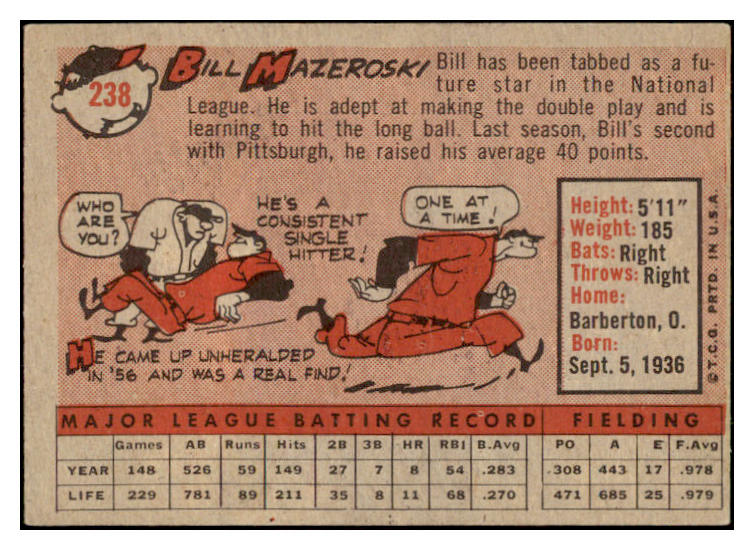 1958 Topps Baseball #238 Bill Mazeroski Pirates EX-MT 530207