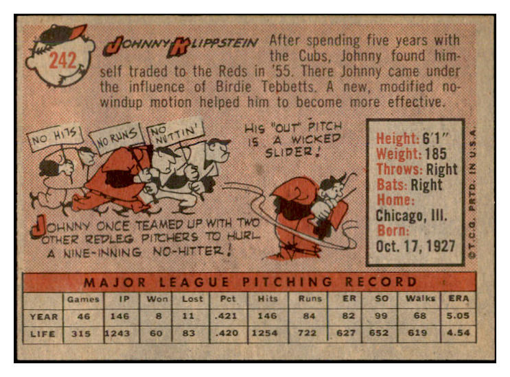 1958 Topps Baseball #242 Johnny Klippstein Reds EX-MT 535824