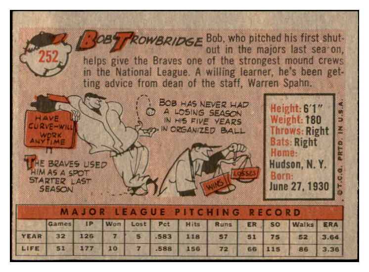 1958 Topps Baseball #252 Bob Trowbridge Braves EX-MT 535841