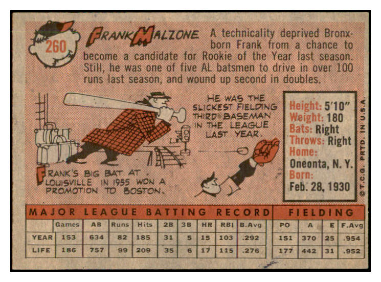 1958 Topps Baseball #260 Frank Malzone Red Sox EX-MT 535849