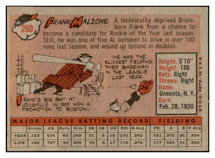 1958 Topps Baseball #260 Frank Malzone Red Sox EX-MT 535850