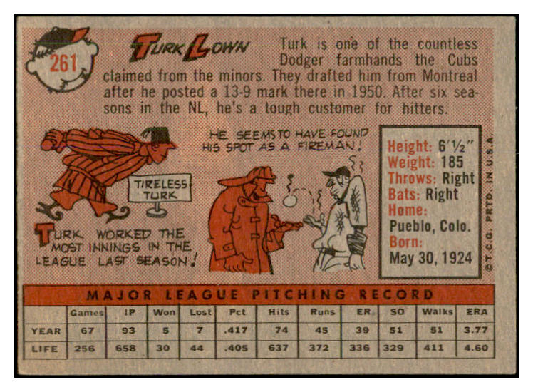 1958 Topps Baseball #261 Turk Lown Cubs EX-MT 535852