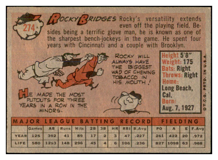 1958 Topps Baseball #274 Rocky Bridges Senators EX-MT 535867