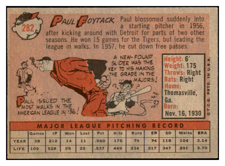 1958 Topps Baseball #282 Paul Foytack Tigers EX-MT 535876