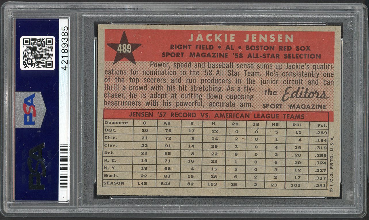 1958 Topps Baseball #489 Jackie Jensen A.S. Red Sox PSA 7 NM 546569