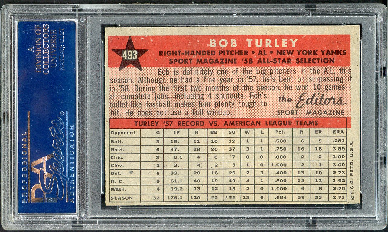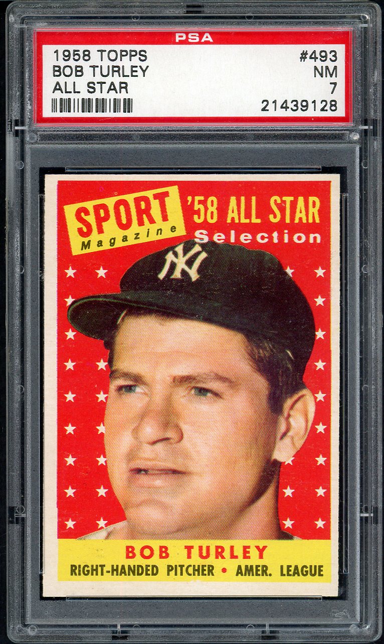 1958 Topps Baseball #492 Bob Turley A.S. Yankees PSA 7 NM 546530