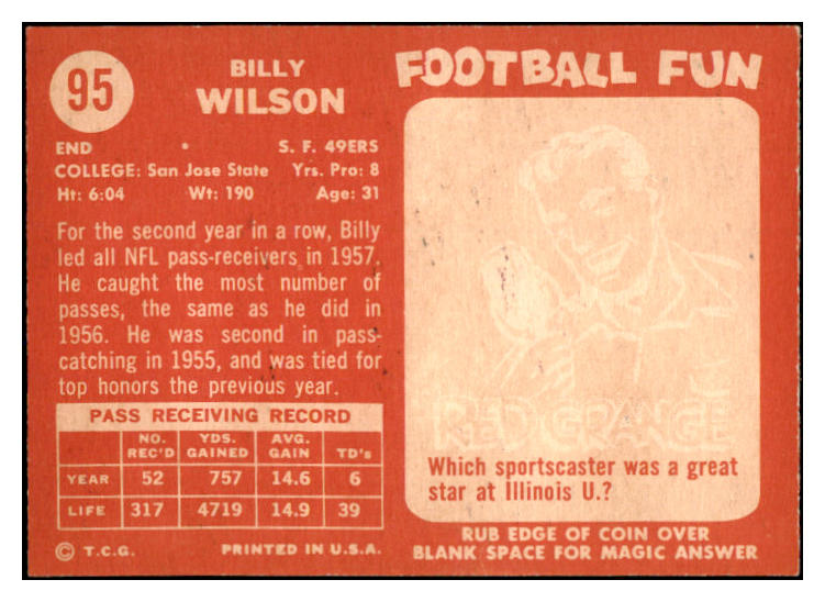 1958 Topps Football #095 Billy Wilson 49ers NR-MT 529509