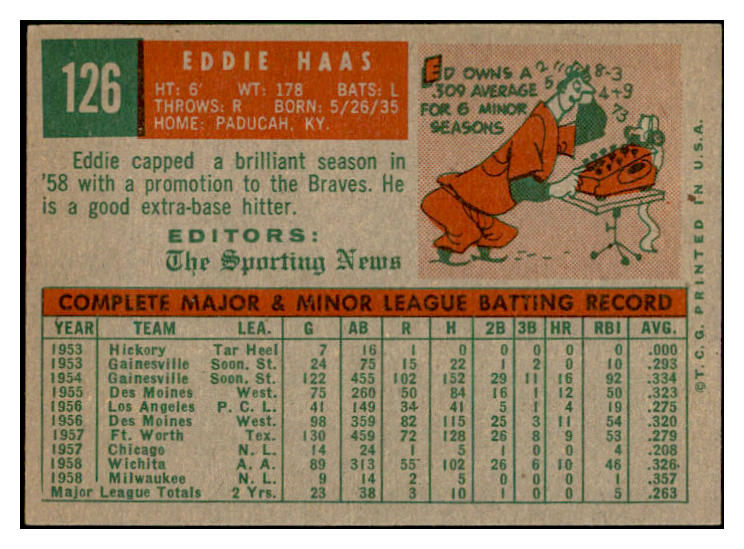 1959 Topps Baseball #126 Eddie Haas Braves EX-MT 536137