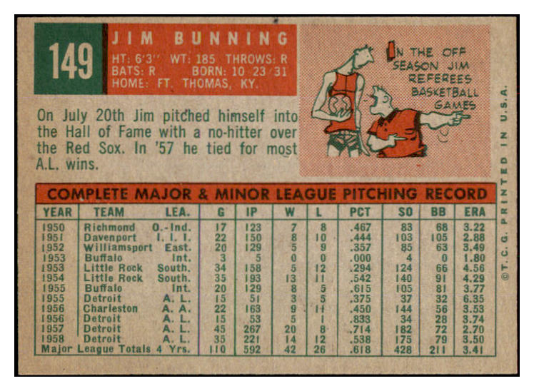 1959 Topps Baseball #149 Jim Bunning Tigers EX 524288
