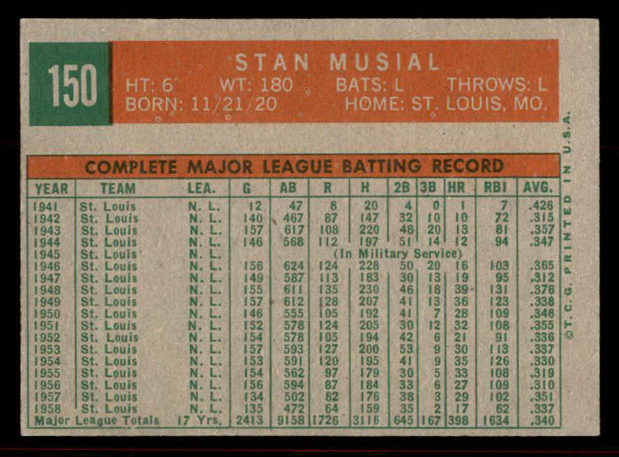 1959 Topps Baseball #150 Stan Musial Cardinals EX-MT 545611