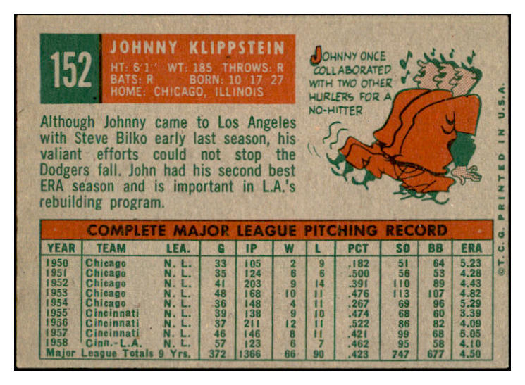 1959 Topps Baseball #152 Johnny Klippstein Dodgers EX-MT 536147