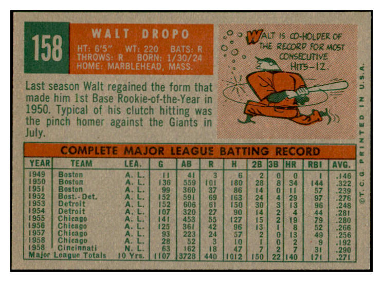 1959 Topps Baseball #158 Walt Dropo Reds EX-MT 536151