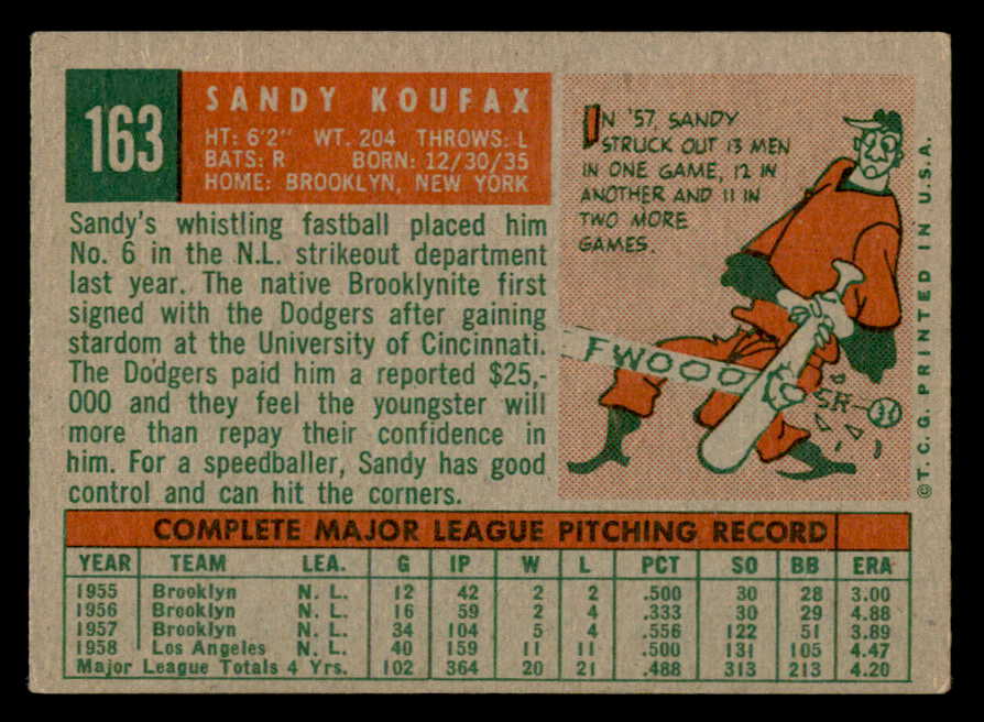 1959 Topps Baseball #163 Sandy Koufax Dodgers VG-EX 538913