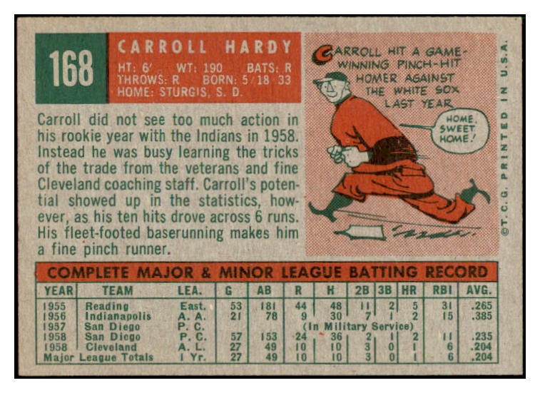 1959 Topps Baseball #168 Carroll Hardy Indians NR-MT 523993