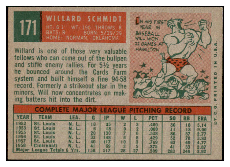 1959 Topps Baseball #171 Willard Schmidt Reds EX-MT 524200