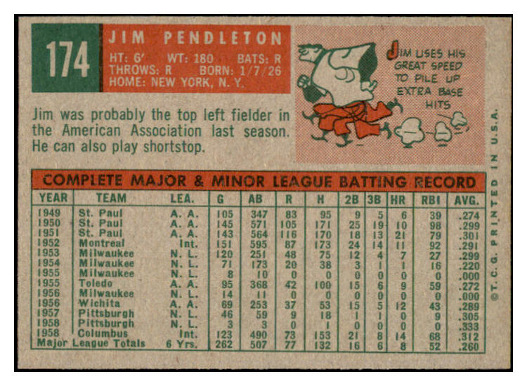 1959 Topps Baseball #174 Jim Pendleton Pirates NR-MT 523996