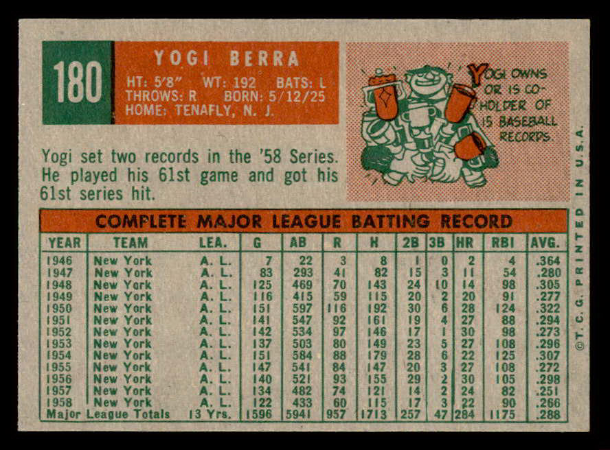 1959 Topps Baseball #180 Yogi Berra Yankees EX-MT 538856