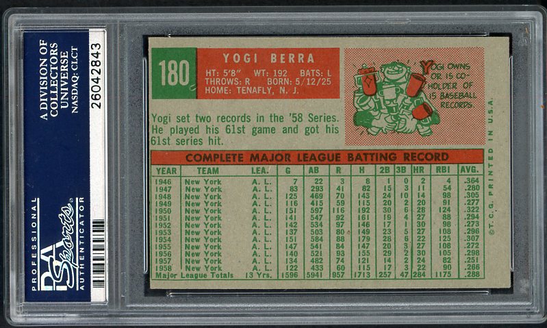 1959 Topps Baseball #180 Yogi Berra Yankees PSA 6 EX-MT 538164