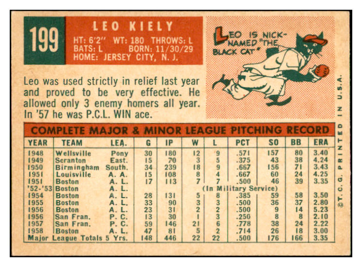 1959 Topps Baseball #199 Leo Kiely Red Sox EX-MT 536161