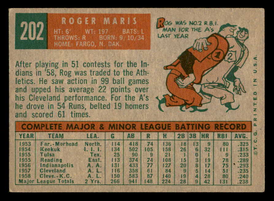 1959 Topps Baseball #202 Roger Maris A's VG-EX 538797