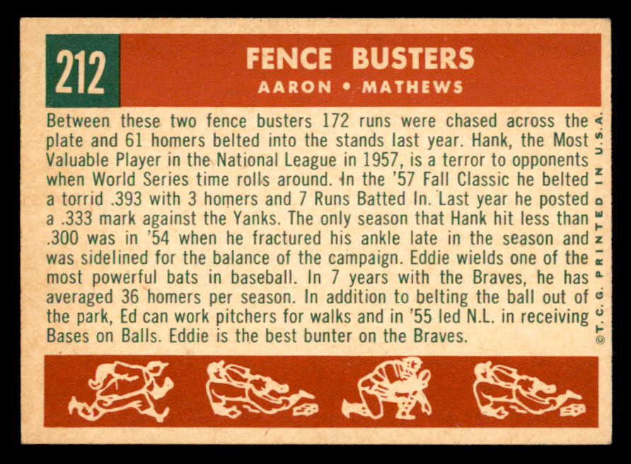1959 Topps Baseball #212 Hank Aaron Eddie Mathews EX-MT 538761